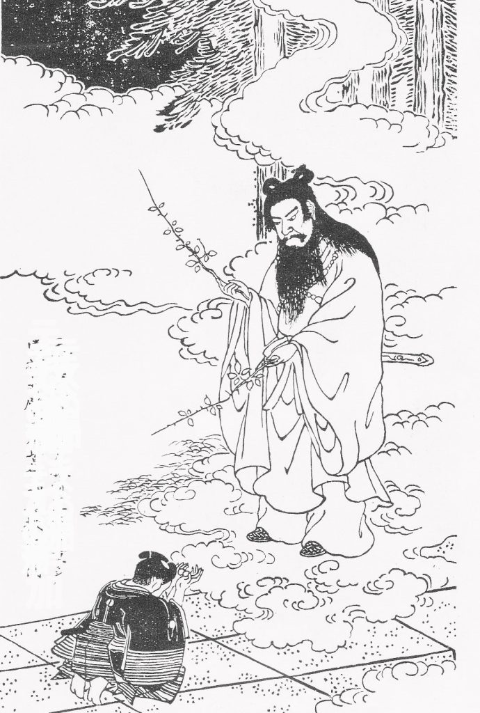重信公は幼少の頃から武技を好んで心胆を練り、未だその奥旨を求めて達することができないので、遂に神授を念じ楯岡在林崎明神に、妙諦を授け給うことを祈願して、赤誠無二の懇祷を傾け一百有余日参籠し、その満願の晩夢中に明神が老翁に現じて、太刀打の根本居合剣法に、三尺三寸の太刀、九寸五分の腰刀を併せ授けられ、茲に大悟することを得たと伝えられています。是が本朝居合の始めで世人はこれを中興抜刀術の始祖と称しております。爾来この術が行なわれて、林崎神明夢想流、又略して、夢想流とも言っているのであります。